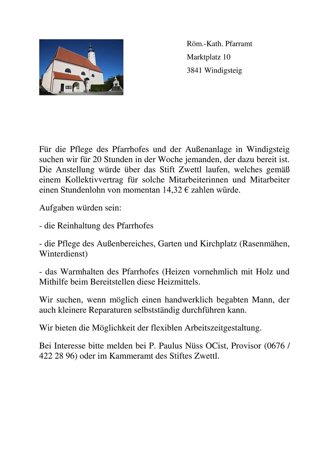 "Am weißen Sonntag hat die Pfarre sich bei Herrn Erwin Riegler besonders bedankt für seinen 65jährigen Dienst als Mesner in der Pfarrkirche. Mit 14 Jahren fing er an und ist so wahrscheinlich einer der längst dienende Mesner unserer Diözese. Seine Aufgabe hat er immer sehr gut erfüllt. Nun wurde er nicht in den Ruhestand, sondern in die Reserve entlassen, wie es P. Paulus ausdrückte, als er ihm eine Ikone des Pfarrpatrons, des Hl. Laurentius und Wein des Stiftes Zwettl überreichen durfte."