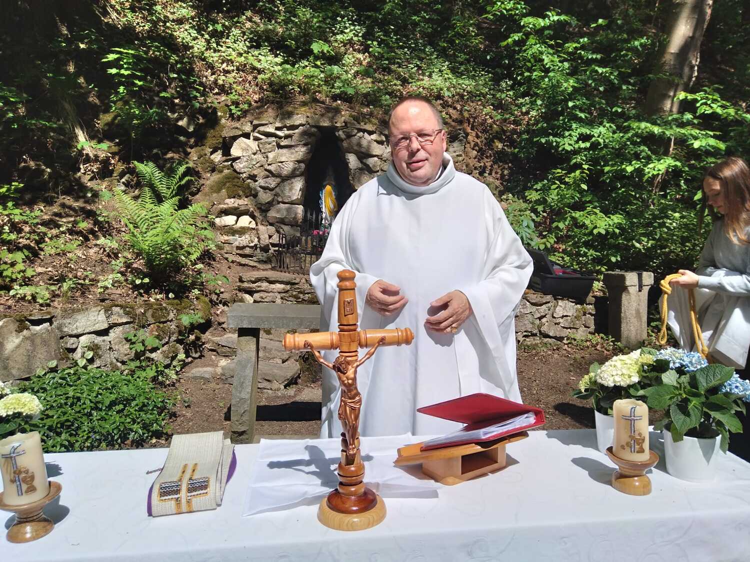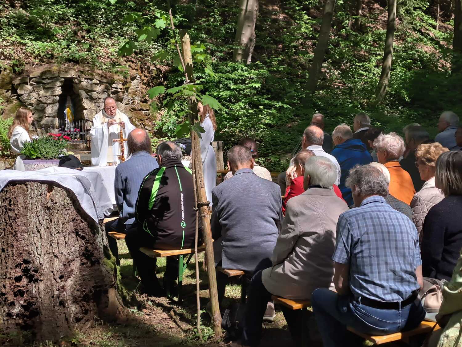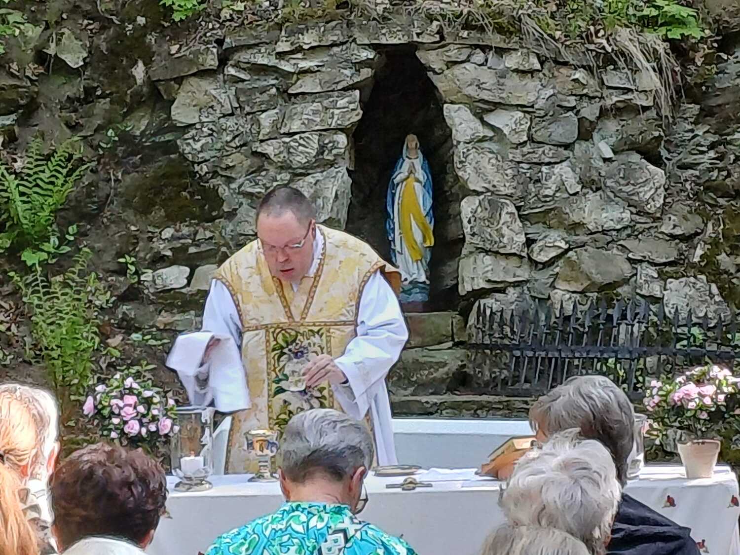 Zu Christi Himmelfahrt feierte P. Paulus mit der Pfarrgemeinde die Heilige Messe bei der Waldgrotte