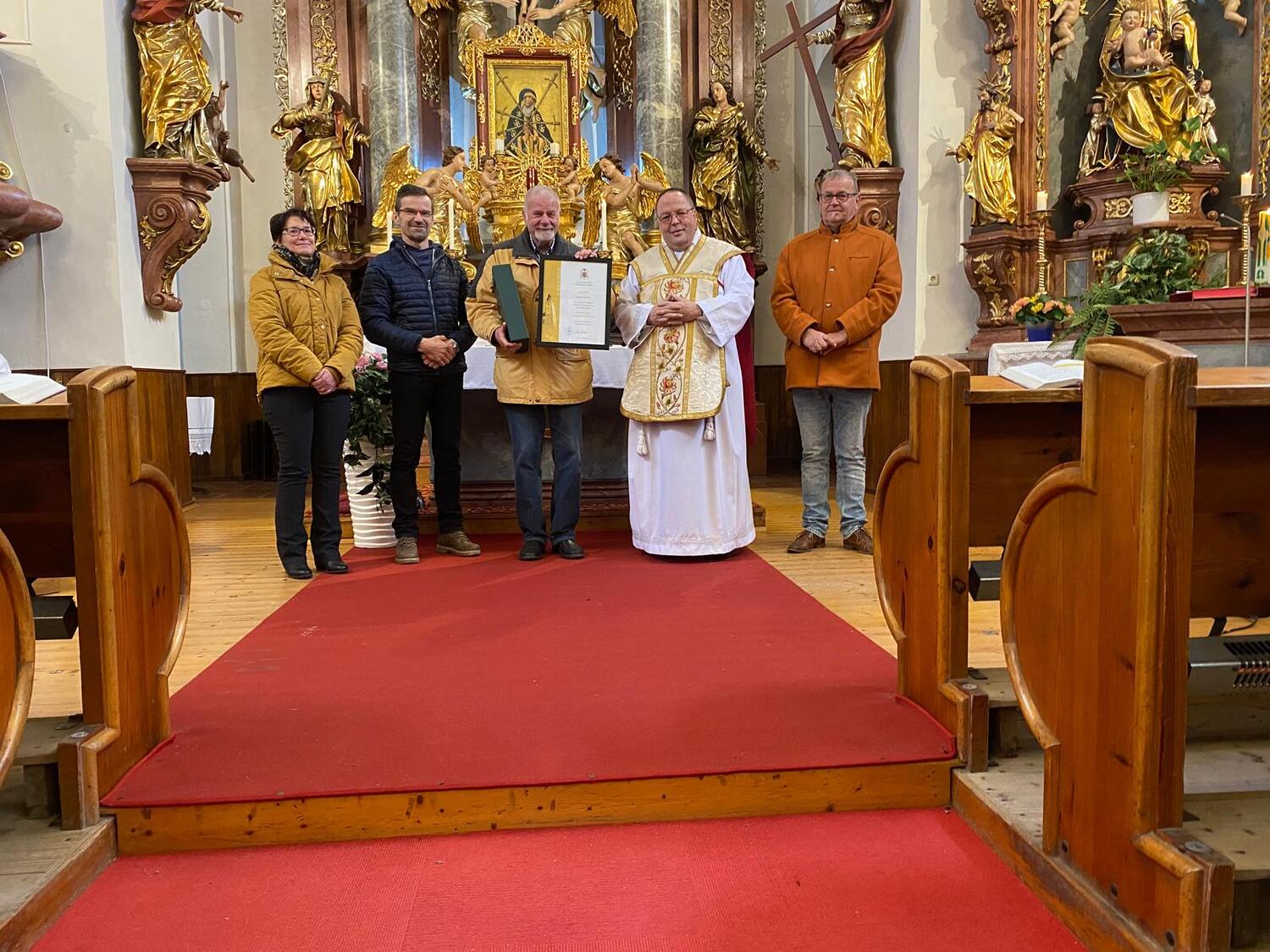 Am Christkönigssonntag wurde unser langjähriger Organist Herr Gerhard Popelka aus gesundheitlichen Gründen verabschiedet. P. Paulus bedankte sich mit einer Ehrung seitens der Diözese. Zum Auszug spielte Gerhard Popelka: Sag zum Abschied leise Servus.